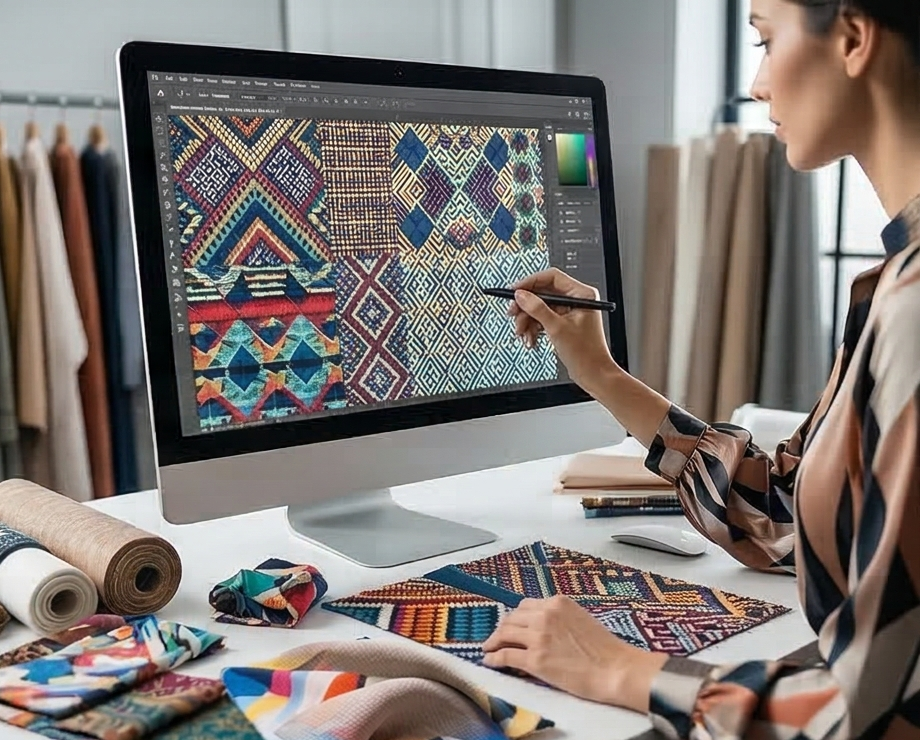 Advanced jacquard printing solutions on polyester and viscose fabrics for premium garment manufacturing.
